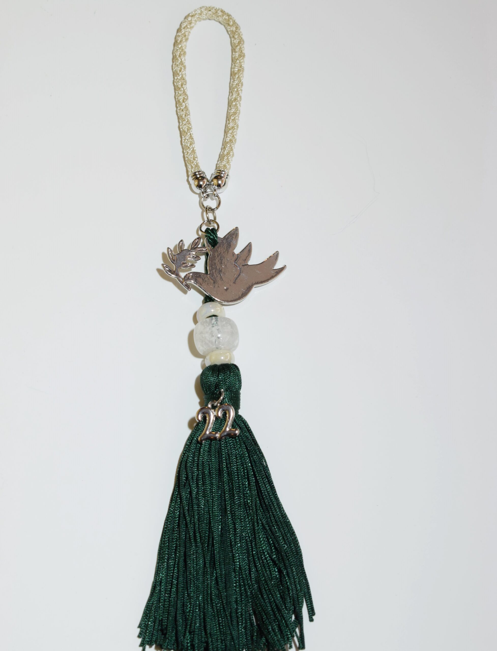 Γούρι με μεταλλικό στοιχείο περιστέρι και μεγάλη φούντα
