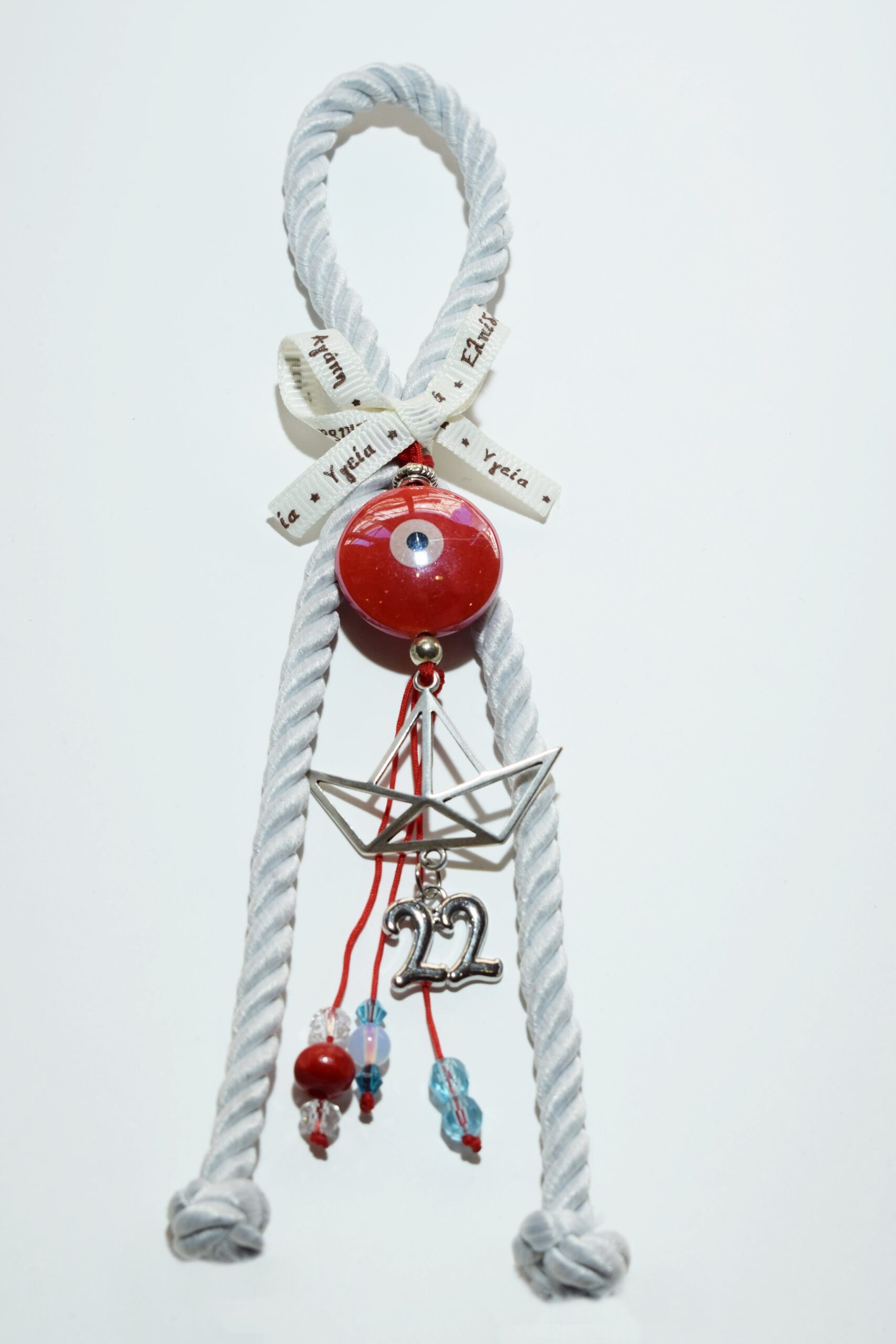 Γούρι για το 2022 με μεταλλικό στοιχείο βάρκα και άλλα όμορφα στοιχεία.