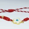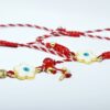 Βραχιόλι μαρτάκι, μαργαρίτα μάτι με σμάλτο δεμένη  με λευκό και κόκκινο κορδόνι